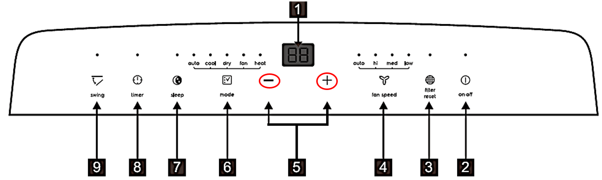 Sıcaklık aralığı (sadece UAE): 20-28°C (68-82°F). Modelinize göre dereceler farklılık gösterebilir. - “+” ve “-” düğmelerini 3 saniyeden uzun süre aynı anda basılı tutarak Fahrenheit ve Santigrat dereceleri arasında geçiş yapabilirsiniz. Kuru/Fan modunda °F/°C’yi olarak seçebilirsiniz.
