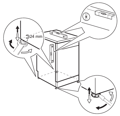 - Ayarlanabilir ayakları gevşeterek veya sıkarak, zemine göre ayakları ayarlayınız (varsa)