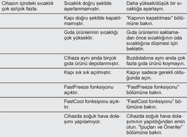 Cihazın içindeki sıcaklık çok az/çok fazla
