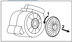 2. Filtreyi saat yönünün tersine çevirin (1) ve ardından çekin (2).