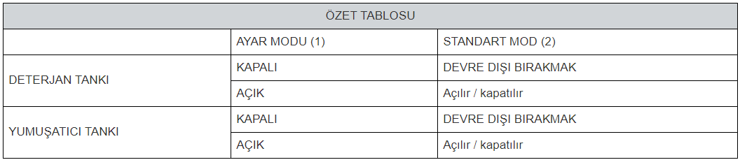 (1): AYAR MODUNDA DEPO SETİNİN DURUMU