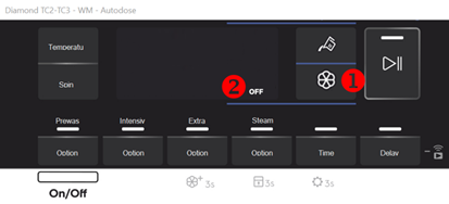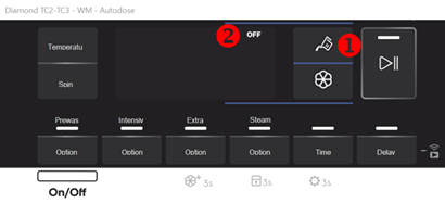 2 . Deterjan tankı düğmesine (1) dokunun. Ekranda OFF (2) görüntülenir.