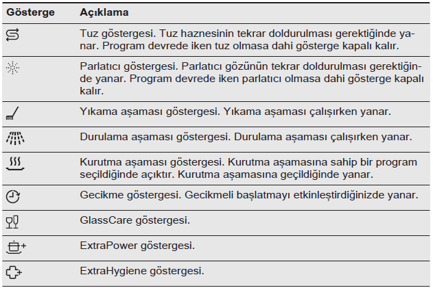 - Bulaşık makinesinde otomatik temizleme göstergesi ("Makine Bakımı") yanması durumunda