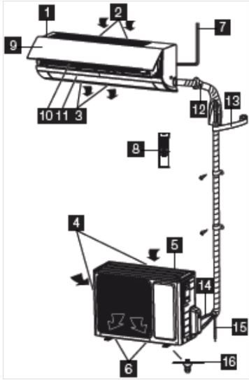 - Yaklaşık + 7C ve aşağısından itibaren dış üniteden su gelebilir.
