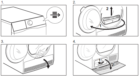 - En iyi kurutma performanslarını elde etmek için filtreyi düzenli olarak temizleyin, tıkalı filtre programların daha uzun sürmesine neden olur ve enerji tüketimi artar.