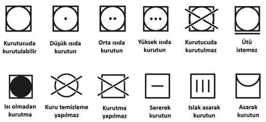 Aşağıdaki tabloda , çamaşırlarınız kurutma makinesine konulması sonrası sıcaklık konumunun çamaşırlarınızın etikete bulunan kurutma konumlarında ayarlanması gereklidir.