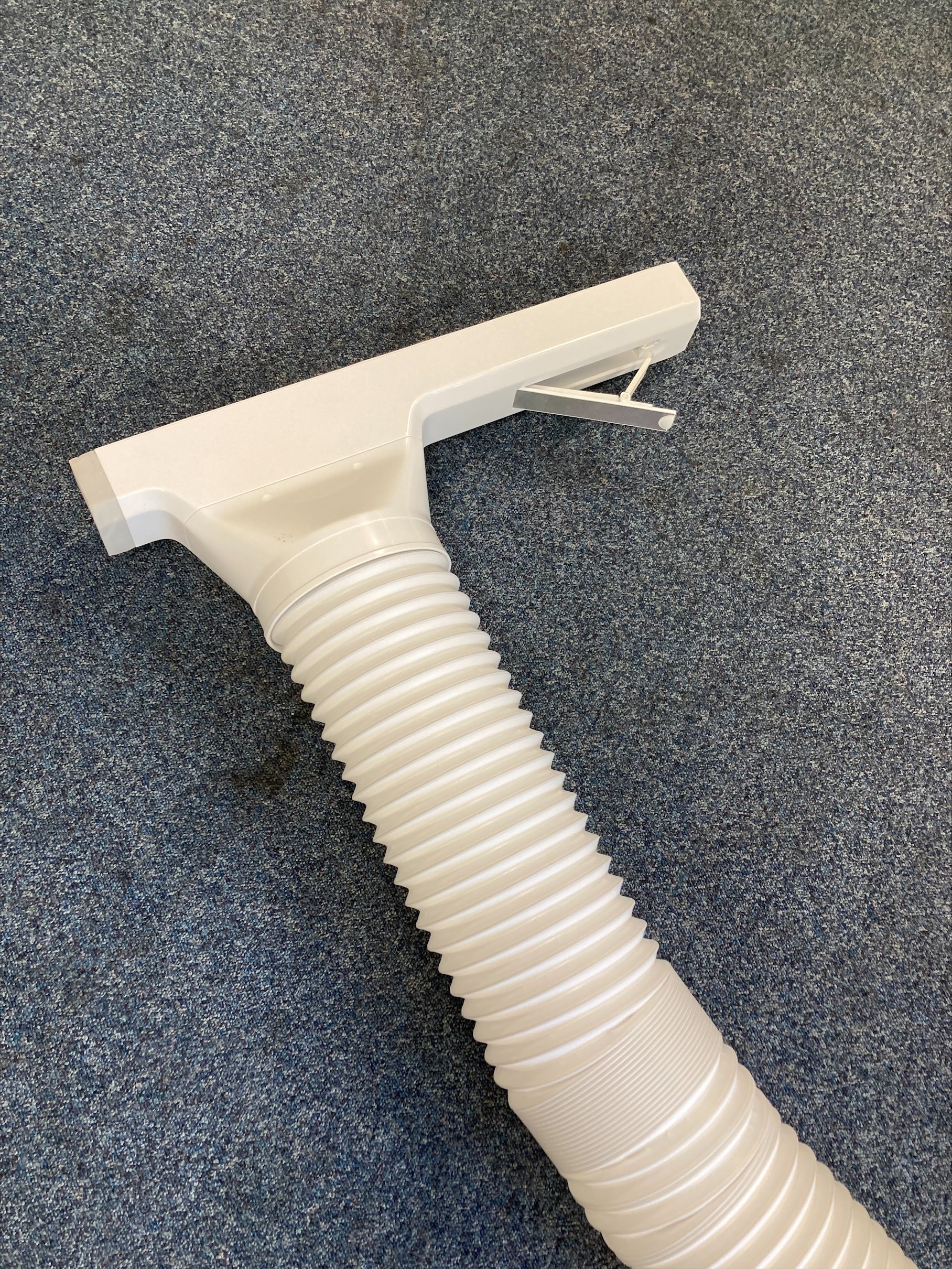 Standart olarak portatif klimalarımız, 150 mm çapında 1,7 m egzoz çıkışı ile gelmektedir. Ayrıca sol tarafta görülen standart pencere tertibatı ile birlikte gelir.