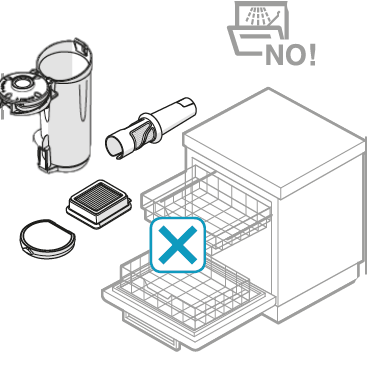 Toz haznesindeki HEPA filtre , kağıdı filtresinin ve siklon filtrenin bulaşık makinesinde yıkanmayacağını lütfen unutmayın.
